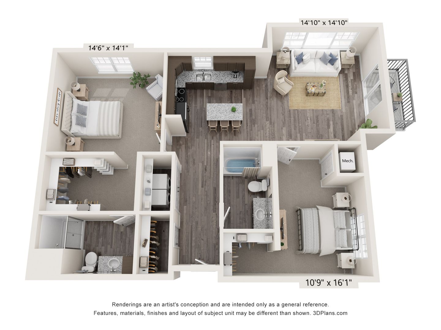 2 Bdrm/2 Bath Spacious Corner Apartment w/Balcony and Plenty of Natural Light